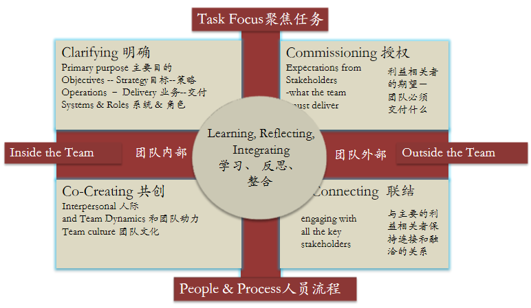 教练团队就实施干预的方法论上,选择了彼得霍金斯的系统性团队教练,如图。我们的工作从对五个维度的诊断开始,用问卷方式厘清影响团队效能的核心障碍。基于诊断结果,设计一些列的干预活动,主要以团队教练的形式展开。